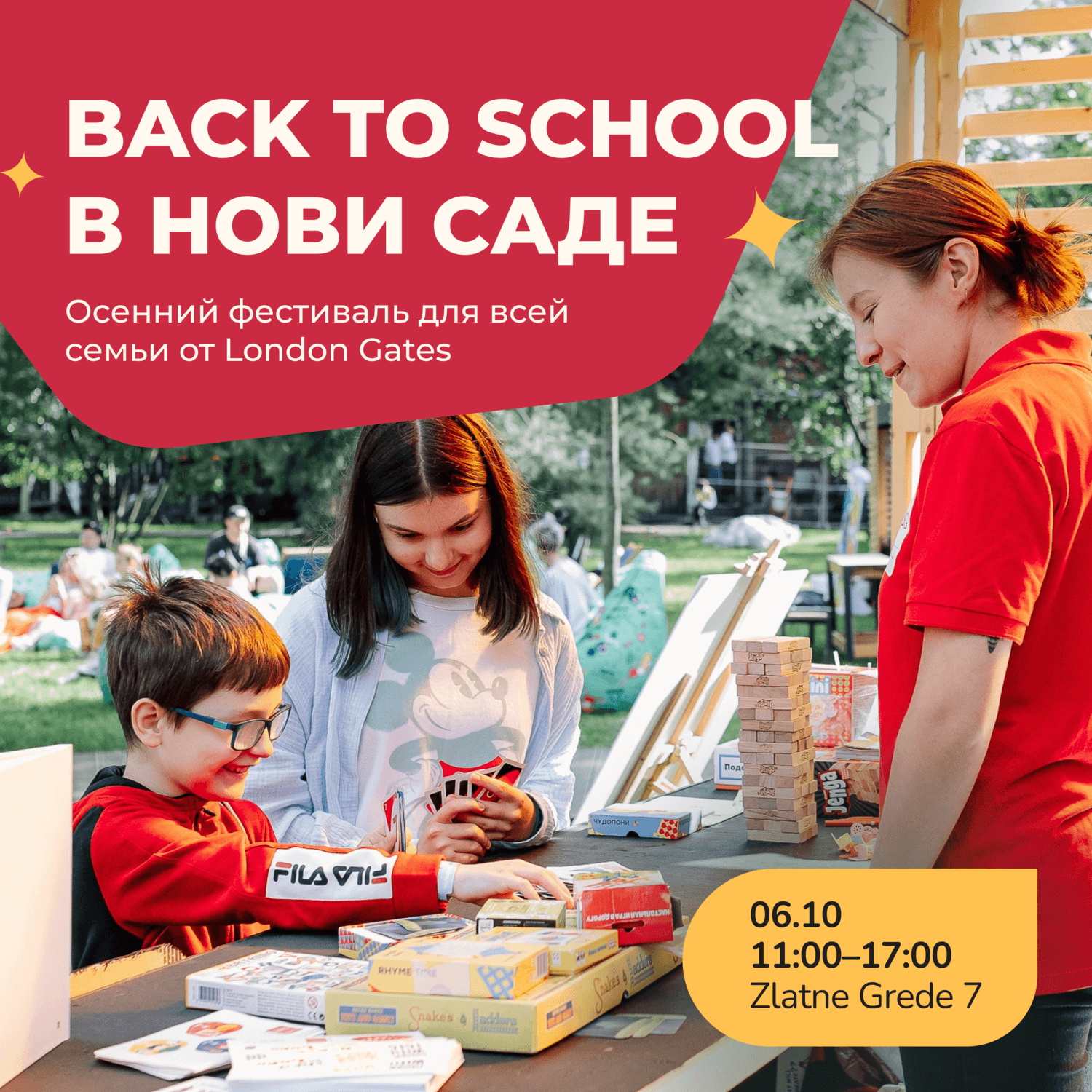 Back to School — большой семейный праздник и фестиваль добрососедства в London Gates, объединяющий в одном пространстве друзей, соседей, единомышленников и классные детские проекты. 6 октября он пройдет в новом пространстве центра в Нови-Саде.